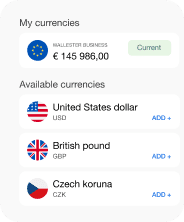 However, you’re not limited to these currencies for transactions. You can make payments in any currency, with the system automatically converting your transactions at the current exchange rate, ensuring smooth and hassle-free international payments.